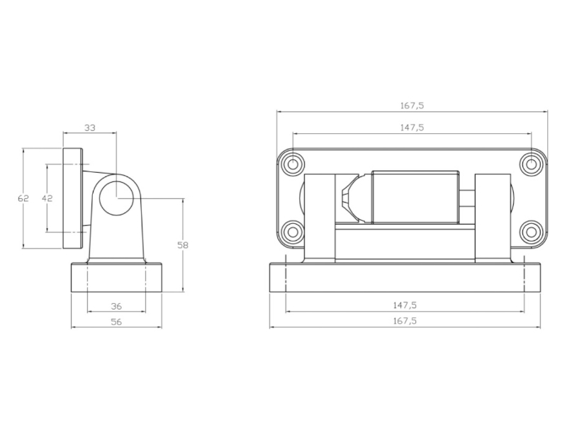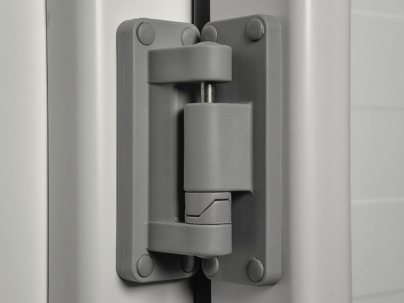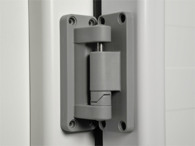 Zawias 14027 to wzmocniona konstrukcja kompozytowa dedykowana do ciężkich, grubych drzwi chłodniczych i mroźniczych. W odróżnieniu od standardowych modeli, wariant 14027 posiada bardziej oddaloną oś obrotu, co pozwala na jego zastosowanie w drzwiach o dużym odsadzeniu (płat wystający przed ościeżnicę w zakresie od 90 mm do 120 mm).
